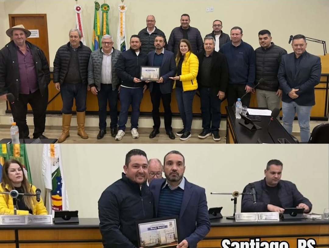 A homenagem, de autoria do vereador Oziel de Mello Soares (PL), foi aprovada por unanimidade pelo Legislativo Municipal, refletindo o amplo reconhecimento ao trabalho de excelência desempenhado pelo delegado, que atua em Santiago desde 2013.