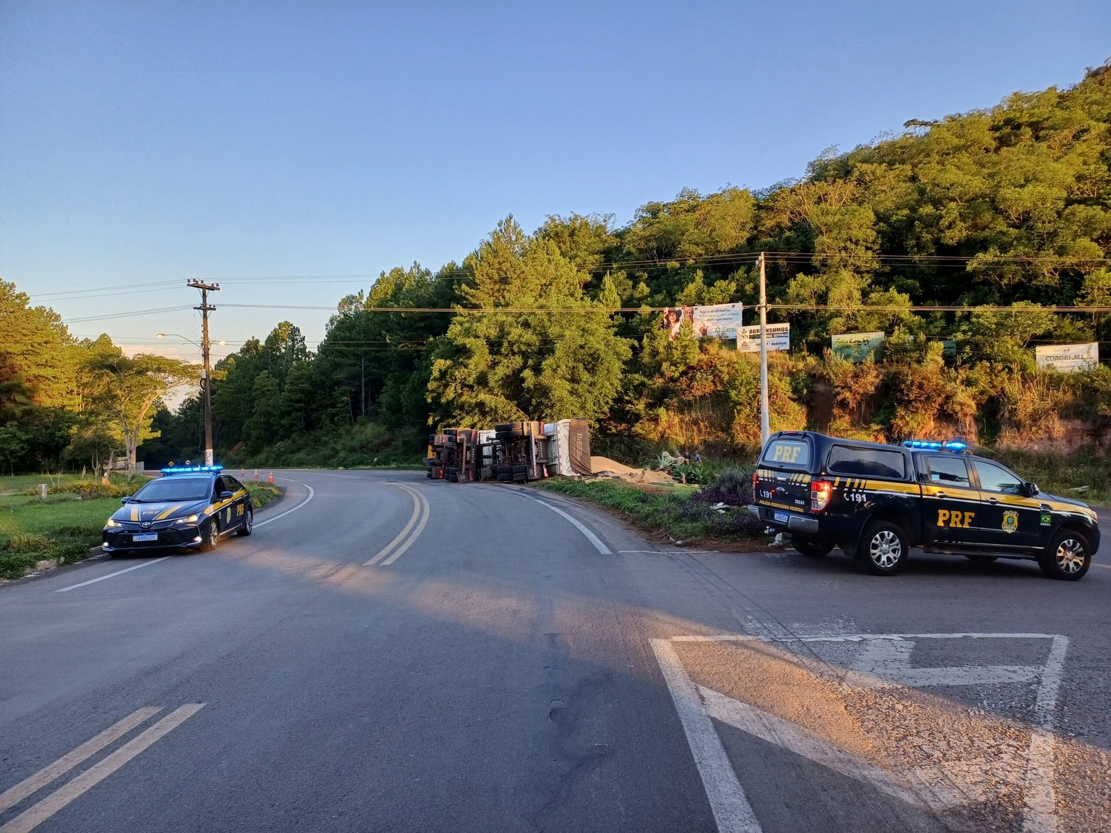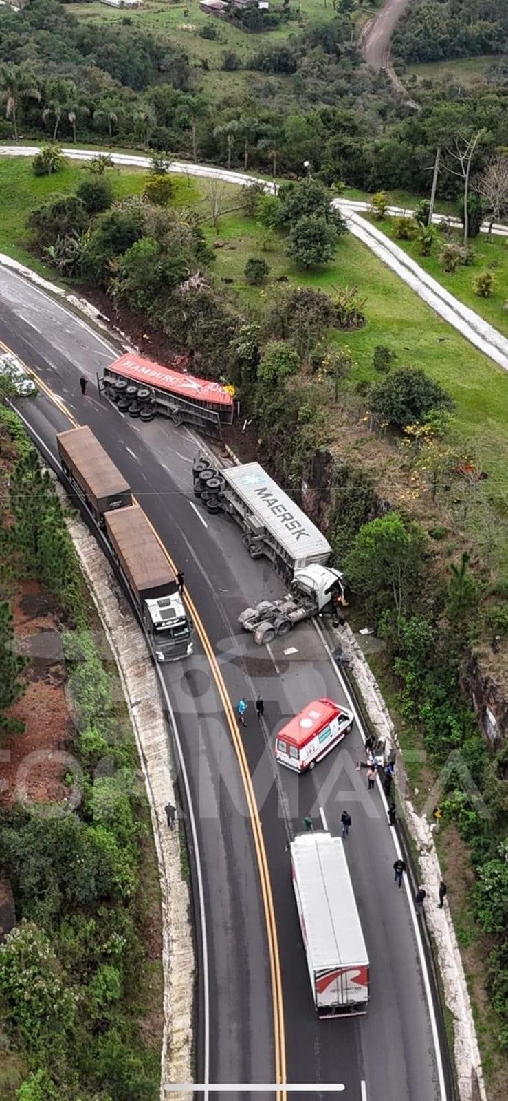 O conjunto, carregado de arroz, ficou imobilizado sobre a pista, bloqueando parcialmente a rodovia. Durante a noite os veículos foram removidos parcialmente, possibilitando a liberação da pista. A remoção total será realizada a partir desta quarta-feira.