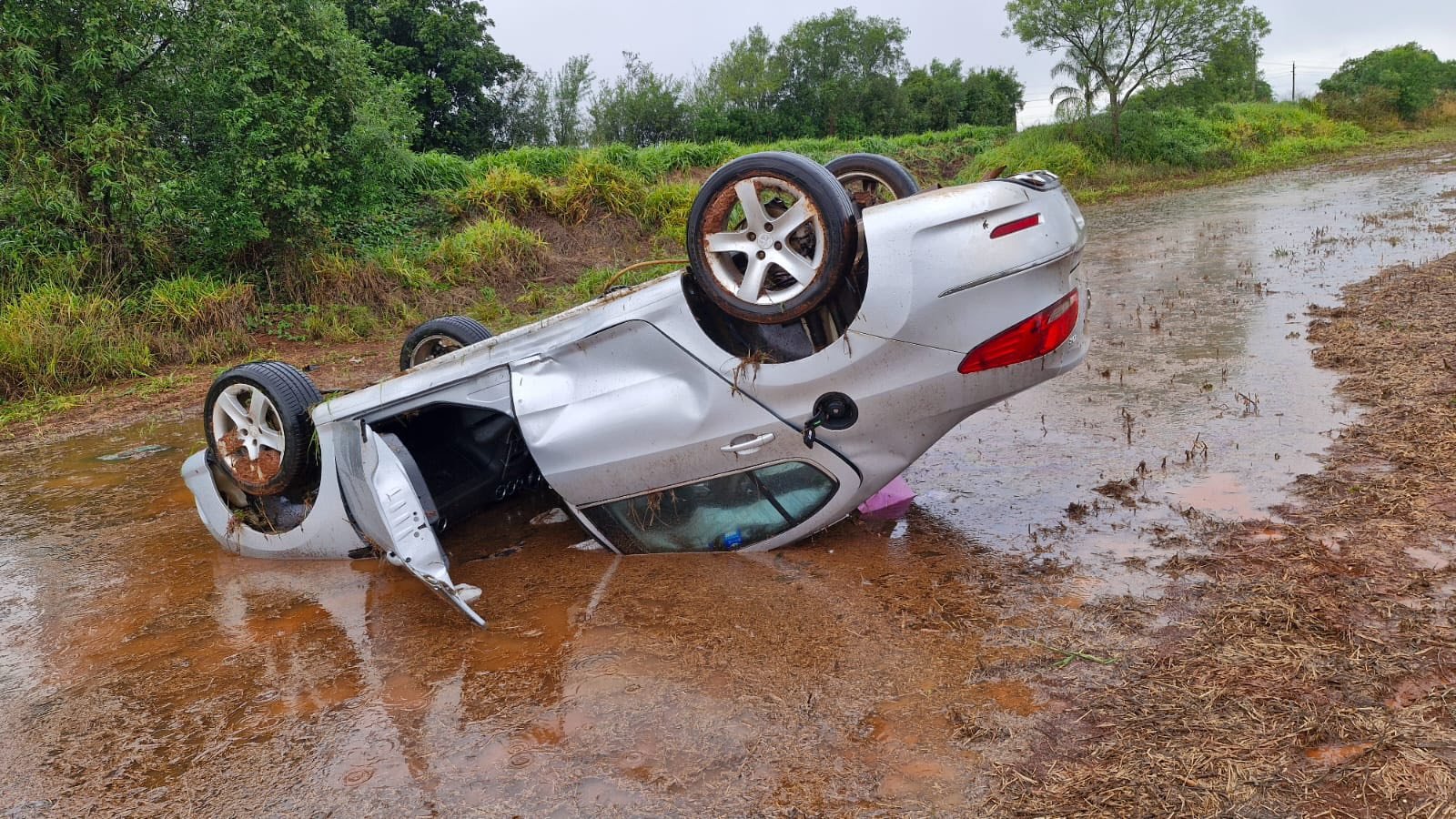 Acidente na ERS 168: Carro aquaplana e capota entre São Luiz Gonzaga e Bossoroca