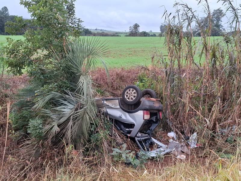 Motorista fica ferido em saída de pista na ERS-168, entre São Luiz Gonzaga e Bossoroca
