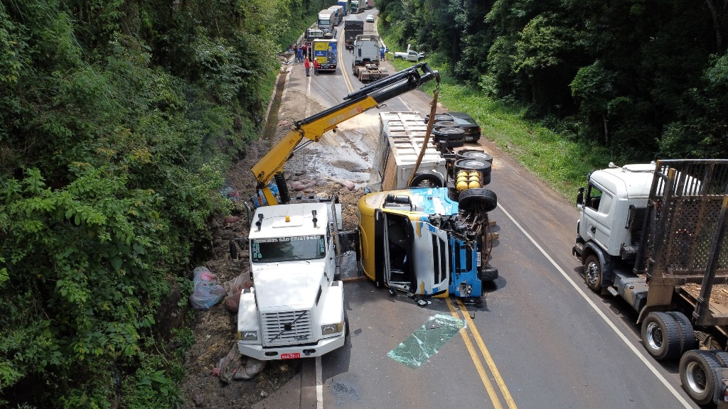Segundo informações preliminares, o caminhão, que utiliza gás natural veicular (GNV) como combustível, ficou tombado na rodovia e com vazamento de gás, gerando risco de explosão. O motorista não sofreu ferimentos, segundo a Polícia Rodoviária Federal (PRF).