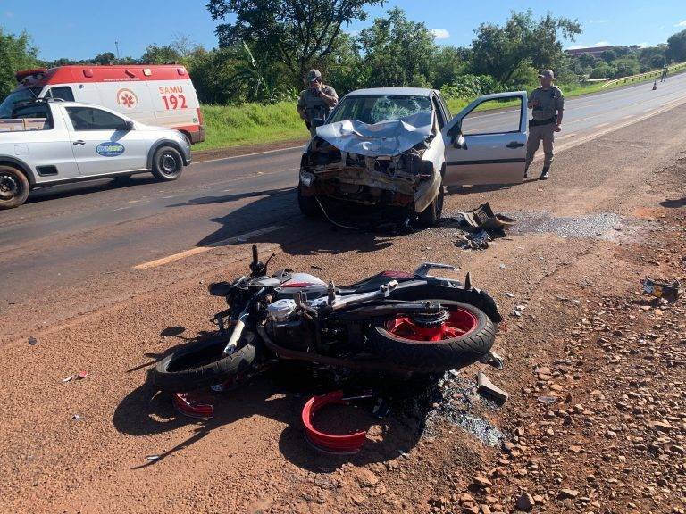 Colisão entre carro e moto deixa motociclista gravemente ferido na BR-285, em São Luiz Gonzaga
