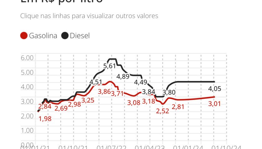 O aumento da gasolina é de 7,11%. O último reajuste da gasolina feito pela Petrobras havia sido em outubro de 2023, com uma redução de R$ 0,12 (para R$ 2,81 o litro).