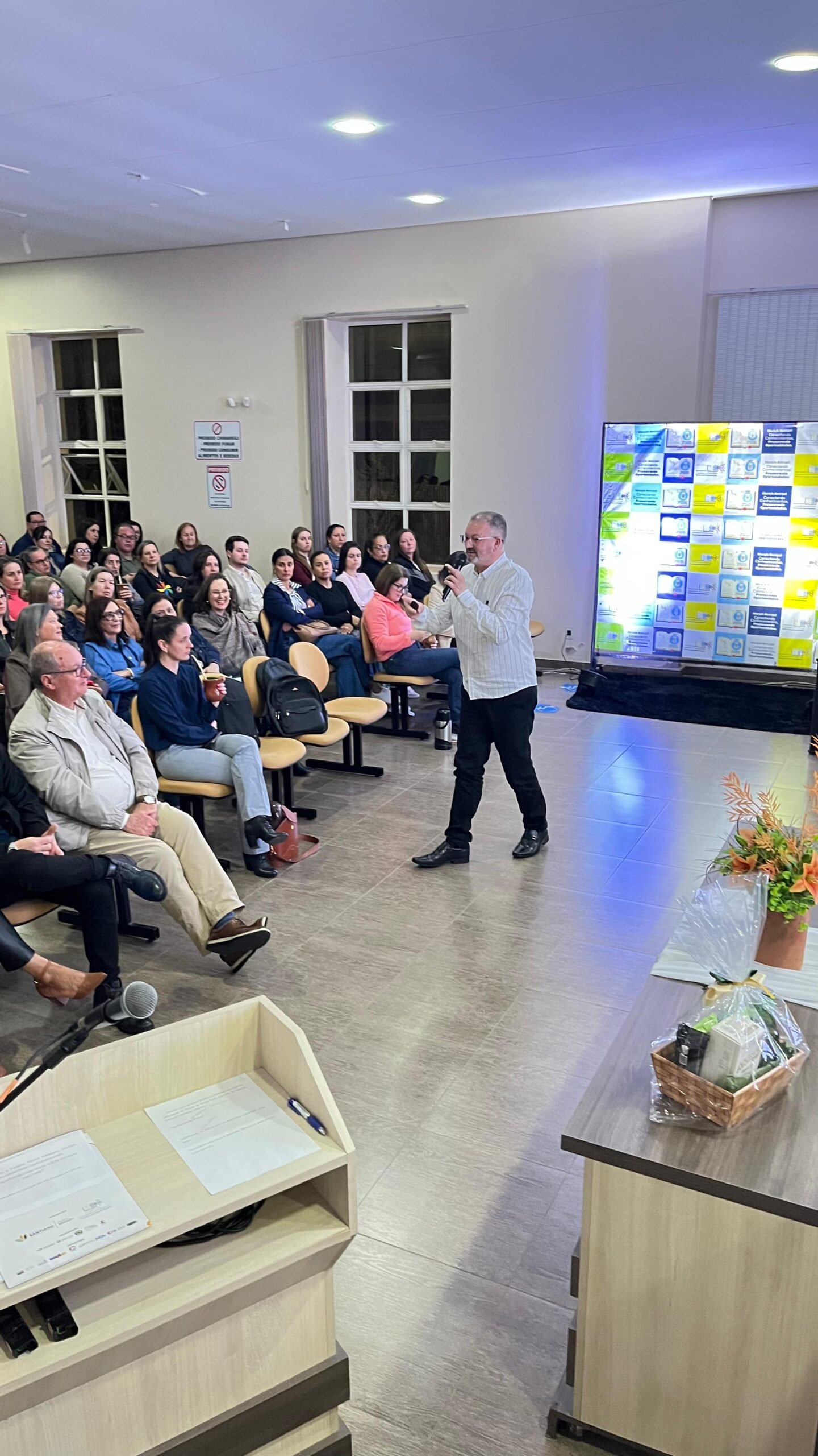 Com o tema “EM FOCO: AS AVALIAÇÕES EXTERNAS E O PAPEL DOS SEGMENTOS DA COMUNIDADE ESCOLAR NO SUCESSO DA APRENDIZAGEM”, foi realizado nesta semana o I Seminário Municipal dos Colegiados da Educação, uma iniciativa da Prefeitura de Santiago, por meio da Secretaria Municipal de Educação, com o apoio da Secretaria da Fazenda.