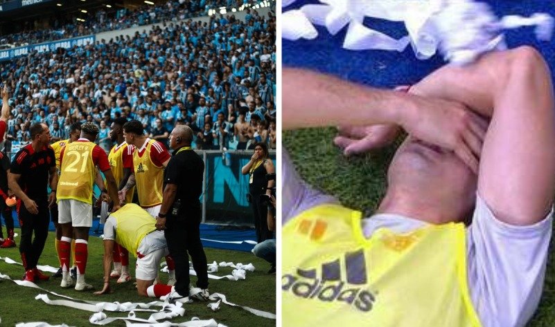 Como já cumpriu um jogo da suspensão automática (o primeiro Gre-Nal da final do Gauchão), restam três partidas da punição.